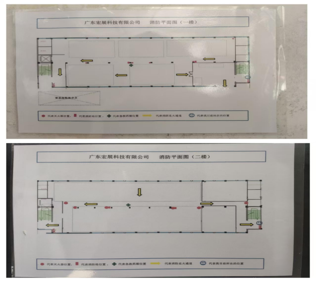 Guided by team leaders, employees evacuated along fire escape routes (bending down, covering mouths and noses) to the assembly point.